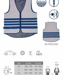 Avec le gilet de sécurité entièrement réfléchissant Lumino Urban, les cyclistes sont bien visibles sur la route. C’est justement la nuit et au crépuscule, ou lorsque les conditions de visibilité sont mauvaises en raison du brouillard ou de la pluie, qu’il est recommandé de porter un gilet de sécurité par-dessus sa veste. Le Lumino Urban est entièrement réfléchissant. Dès qu’il est éclairé par des phares, il brille de manière voyante et entièrement en argent avec des bandes bleues.