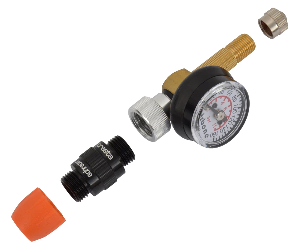Le manomètre Airbone est très précis, il mesure des pressions jusqu’à 11 bars maximum et convient aux valves Presta et Schrader.