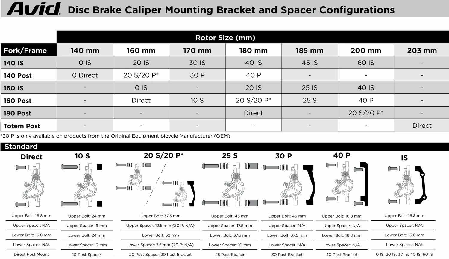 Au moyen d’un adaptateur, on peut ainsi adapter les freins individuellement. Convient pour un disque de frein avant de 180 mm ou un disque de frein arrière de 160 mm pour le standard international. Avec vis de fixation.