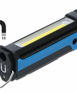 Avec jusqu’à 150 lumens, la lampe de travail sans fil COB-LED de BGS-technic est un must pour ton atelier de loisirs. La petite lampe de travail LED maniable avec crochet de suspension pivotant offre un éclairage de tête et latéral et est particulièrement adaptée aux endroits difficilement accessibles.