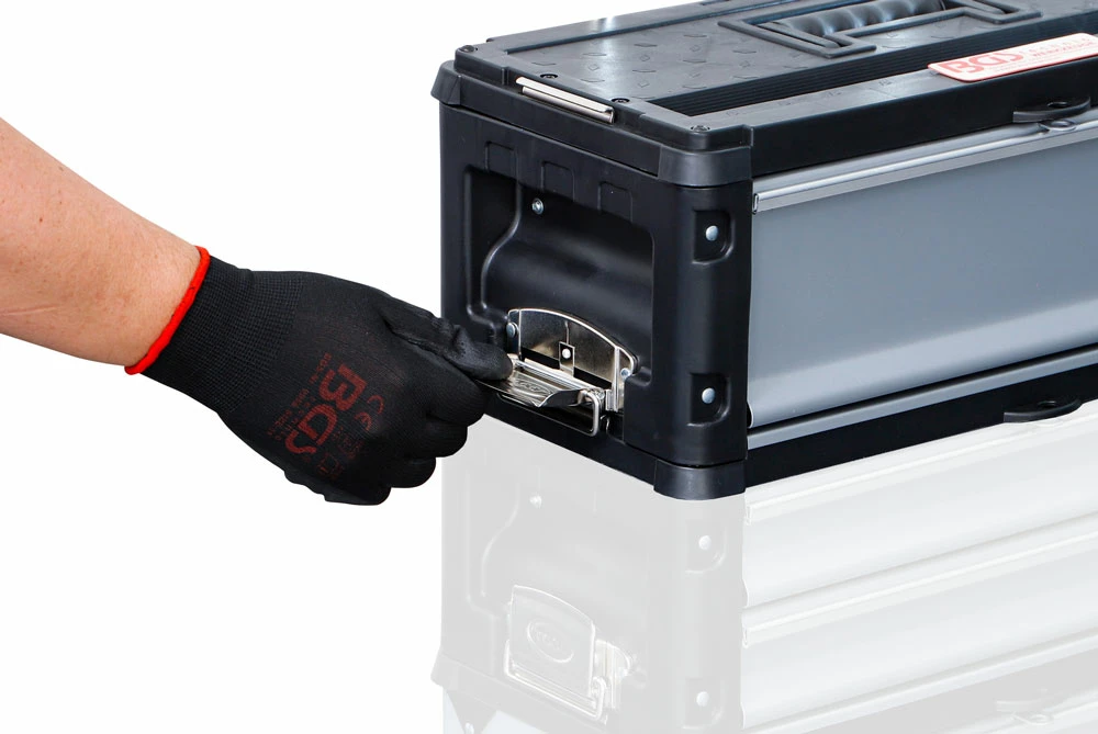 La mallette à outils avec un tiroir de BGS technic est composée d’une coque rigide en plastique et d’une tôle en acier. En combinaison avec le chariot à outils 2002 disponible en option, cette rehausse est le chariot de montage idéal pour les monteurs, les mécaniciens, les électriciens ou les bricoleurs amateurs de vélos.