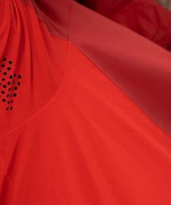 We also added a water-repellent front zip, an adjustable peaked hood and welded seams inside so water stands no chance of getting where it shouldn’t. The pockets with its hidden zip are the perfect place to stow your keys, smartphone etc. and reflective details provide added safety in low-light conditions. Perforation under the arms keep the air circulating when the trail heads uphill, whilst the drawcord hem can be adjusted for the perfect fit.