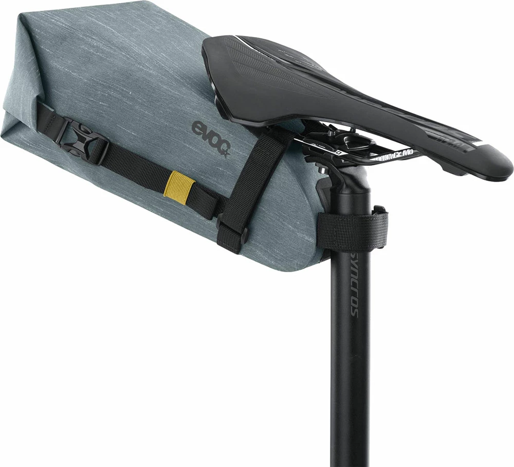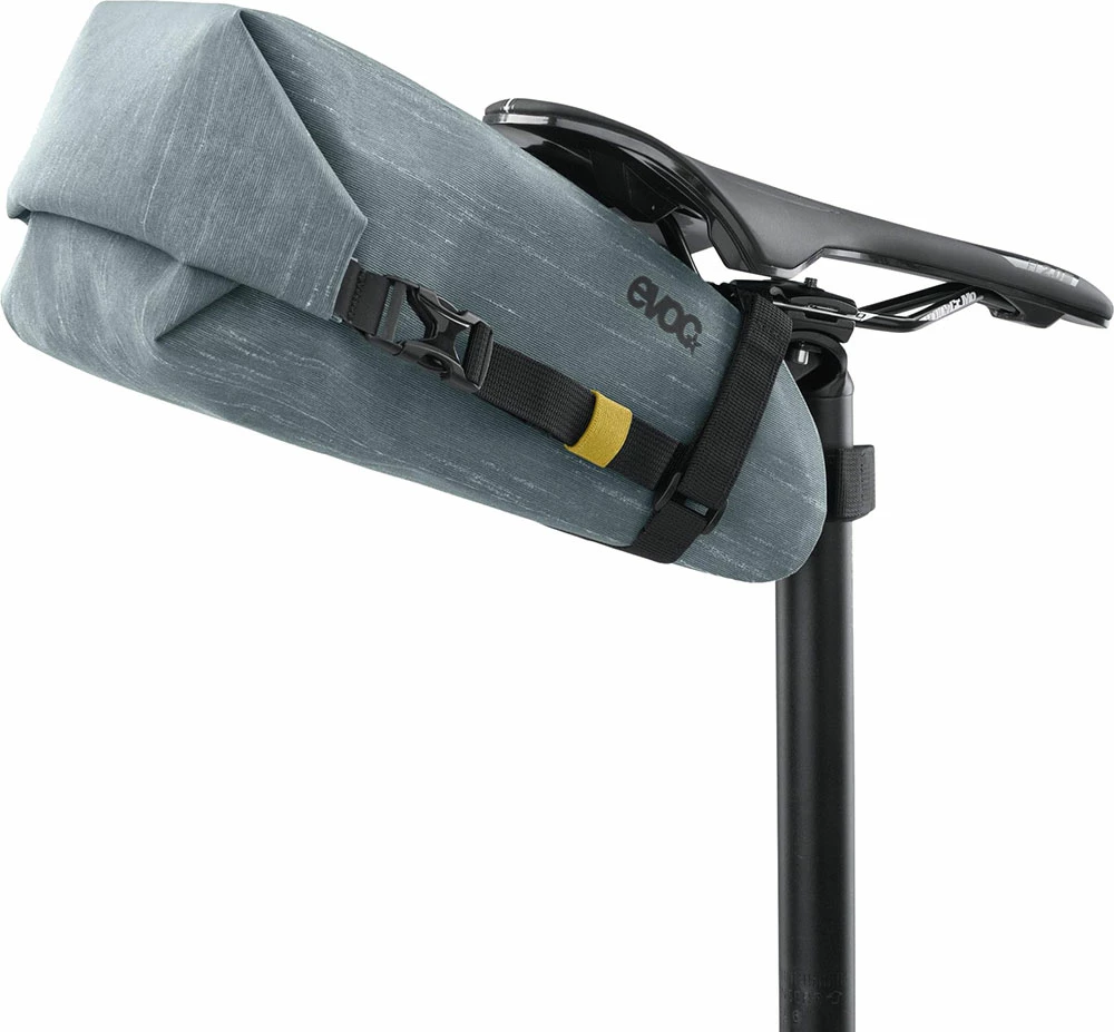 Le SEAT PACK WP d’EVOC est une sacoche de selle lĂ©gère et parfaitement Ă©tanche pour un espace de rangement supplĂ©mentaire et compact lors de tes randonnĂ©es Ă vĂ©lo. Elle se monte en un tour de main grâce Ă une fermeture velcro, s’adapte Ă presque toutes les tiges de selle et offre, grâce Ă son volume adaptable, un espace confortable pour les outils, la veste de pluie et le ravitaillement.