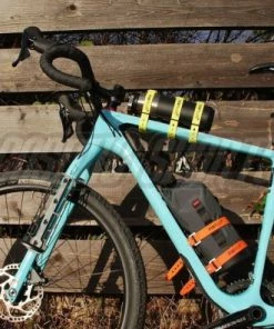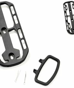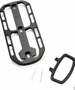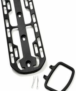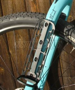 L’astucieux système de porte-bagages Cargo de Fixplus en aluminium se fixe sur le porte-bidon ou sur les Ĺ“illets de fourche.