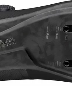 The R2 outsole is made of carbon fiber, saving weight and increasing stiffness. With a stiffness index of 10, this outsole is the most responsive in the entire Fizik range. A wide ventilation slot and deep internal air channels provide optimal airflow and help regulate temperature. Cleat positioning is set slightly further back compared to conventional soles to optimize pedaling efficiency and reduce pressure on the knees – particularly well suited to very aggressive, forward-facing aero positions.