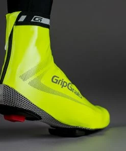 The waterproof stretch fabric gives a tight fit and the rear zipper makes it easy to pull over the shoe. Reflective print on the side of the covers along with the yellow fluorescent colour make for augmented visibility in low light conditions.