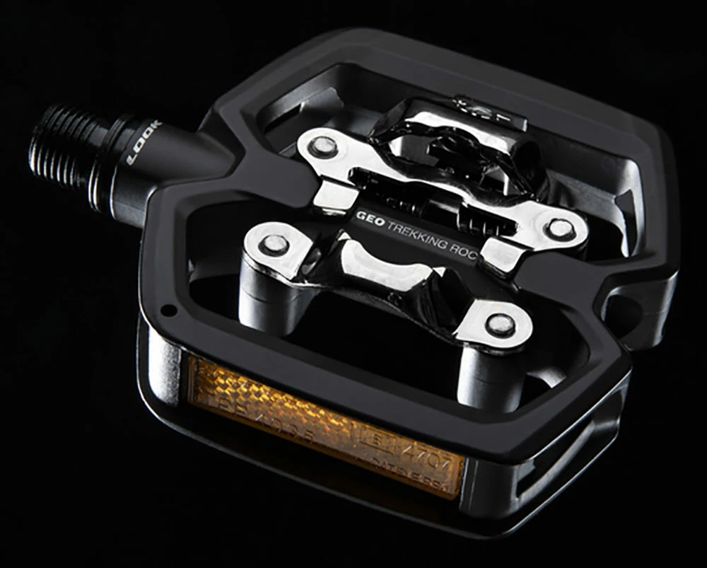 GEO-Trekking est la nouvelle pédale hybride de LOOK, conçue pour une utilisation polyvalente. La pédale peut être utilisée aussi bien avec des chaussures à pédales plates qu’avec des chaussures à clic équipées des crampons X-TRACK Easy compatibles SPD. Que ce soit pour les pendulaires, les cyclistes urbains ou les aventuriers, les nouvelles pédales GEO-Trekking conviennent à de nombreuses utilisations.