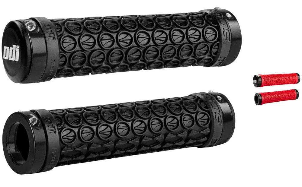 Pour les poignées SDG Lock-On, une moitié a été équipée de logos SDG ronds et souples pour amortir la paume de la main, et l’autre moitié de petits logos SDG placés les uns à côté des autres, qui assurent un maintien extrêmement bon sur les doigts.