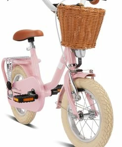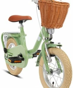 The model is braked by a back pedal brake and a V-brake suitable for children, whose brake lever can be individually adjusted for optimal brake dosage. Further parts make the PUKY STEEL CLASSIC 12 our absolute favourite. The woven handlebar basket is made of flexible plastic, which cannot splinter or show sharp edges in case of a fall. The saddle, the safety handlebar grips and the bell are matching the overall concept in brown and the respective frame colour of the PUKY STEEL Classic 12. Even details, such as the practical tension strap on the luggage carrier, are standard on board and leave nothing to be desired. As usual from PUKY, saddle and handlebars of the retro bike are height adjustable and wheels and pedals are ball bearing driven, which guarantees longevity. The PUKY STEEL Classic 12 is provided with a shock-resistant powder coating and is available in the colours retro-green and retro-rose.