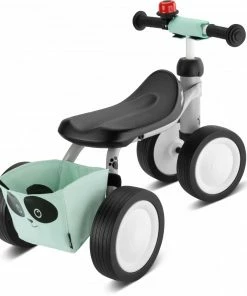 The PUKYlino is the first vehicle for children from the age of one. Four wheels with quiet float tyres and an ergonomic seat offer optimum stability for our youngest riders from 75 cm in height. Mounting and dismounting, pushing off and first steering movements are learned in a playful way and promote the child’s motor skills. For protection, the PUKYLINO Bundle is equipped with safety handlebar grips, which have large impact surfaces and prevent slipping sideways. A steering lock and the PUKY handlebar pad round off the protective equipment. As a classic slide vehicle, PUKY recommends using the PUKYLINI indoors on level ground. In this way, children can safely gain their first experience with a PUKY vehicle while staying within sight of their parents. To complement the classic model, we have added a Panda frame bag made of water-repellent polyester and a red rotating ring bell to the PUKYLINO bundle.