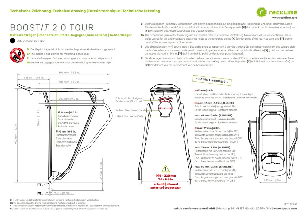 CaractĂ©ristiques du produit – Racktime BoostIT 2.0 Tour