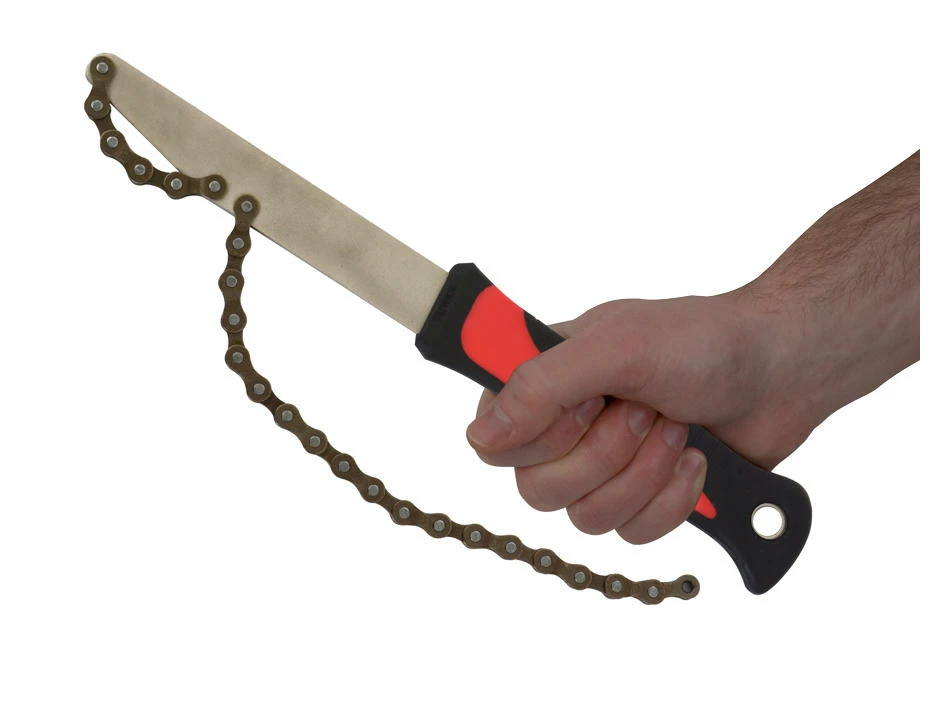Le fouet Ă chaĂ®ne est un outil important pour le dĂ©montage de la cassette de la roue libre. Le fouet Ă chaĂ®ne permet d’appliquer un contrepoids afin de pouvoir desserrer le vissage de la cassette. Le fouet Ă chaĂ®ne maintient quasiment la roue libre par l’intermĂ©diaire de la cassette, qui sert de contrepartie Ă la bague de fermeture et possède un filetage correspondant. C’est pourquoi un fouet Ă chaĂ®ne est toujours utilisĂ© en combinaison avec un outil pour la bague de fermeture (extracteur de couronne) afin de retirer la cassette.