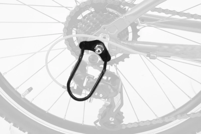 Protection de dérailleur courte en acier de Radon, qui se monte sur le cadre ou sur le vissage de l’axe. Il entoure le dérailleur comme une cage de protection et le protège des dommages en cas de chute ou de transport.