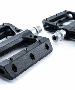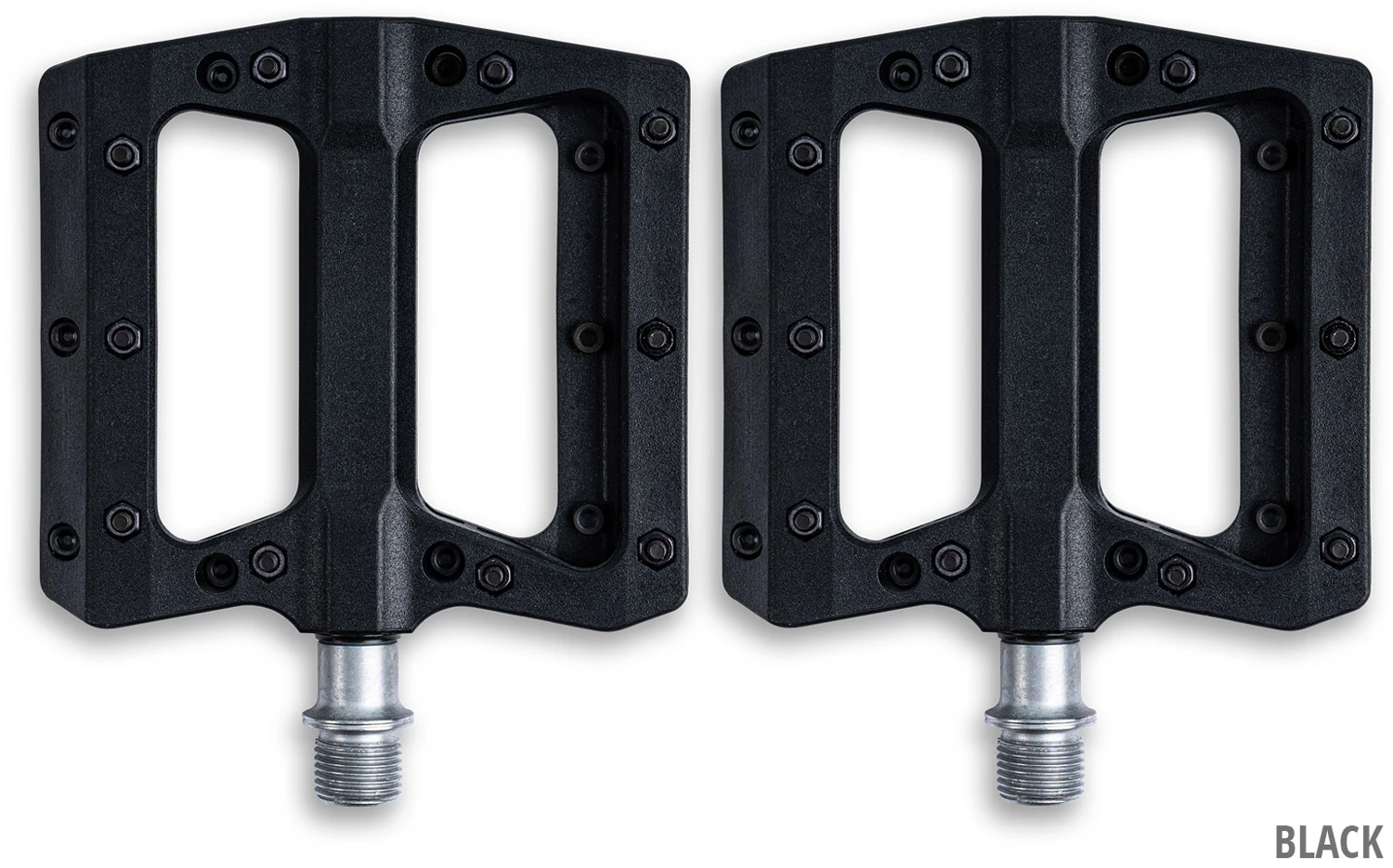 Pédale ultralégère ETP Flat de RFR en thermoplastique technique offre une adhérence parfaite par tous les temps grâce aux pins antidérapants interchangeables. L’axe Cr-Mo usiné CNC est extrêmement léger et durable.
