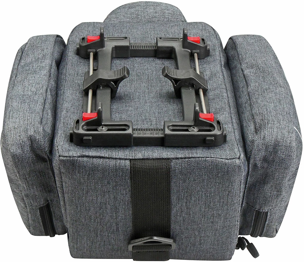 Note : L’UniKlip 2 est déjà monté sur l’accessoire ou disponible séparément comme kit de rétrofit. Grâce à la position identique des trous de l’adaptateur au fond du sac, vous pouvez facilement changer les paniers, les sacs ou les boîtes qui sont équipés d’un adaptateur Racktime, GTA, Snapit, MIK, par la fixation universelle UniKlip.