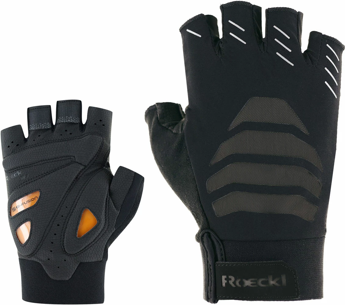 La paume ERGONOMIC CUT en tissu ROECK-GRIP® souple, tactile et respirant a été équipée du rembourrage flexible sans coutures breveté COMFORT-INNOVATION pour le pouce. Le résultat : un confort maximal, moins de fatigue pour la main et une prise en main précise du guidon. Tout aussi pratique et confortable : le PULL OFF SYSTEM pour retirer le gant sans effort et un pouce soft-wipe pour essuyer la sueur. Une bande velcro au dos du gant avec le logo ROECKL SPORTS Reflect sur la manchette élastique à coupe étroite et plus longue assure une fixation sûre et confortable sur le poignet. Les éléments de design réfléchissants soulignent le charisme sportif de l’IRAI.