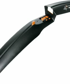 La fixation rapide est une caractĂ©ristique particulière : Après avoir vissĂ© un adaptateur dans le tube de direction lors du montage initial, le garde-boue avant peut ĂŞtre verrouillĂ© en place et dĂ©tachĂ© du vĂ©lo en appuyant sur un bouton. Le système de cĂ´nes amĂ©liorĂ© 2.0 couvre un diamètre allant jusqu’Ă 39 mm (1,8 pouces). La livraison comprend deux adaptateurs de cĂ´nes de 19 Ă 39 mm. Des adaptateurs pour fourches rigides sont disponibles en option…