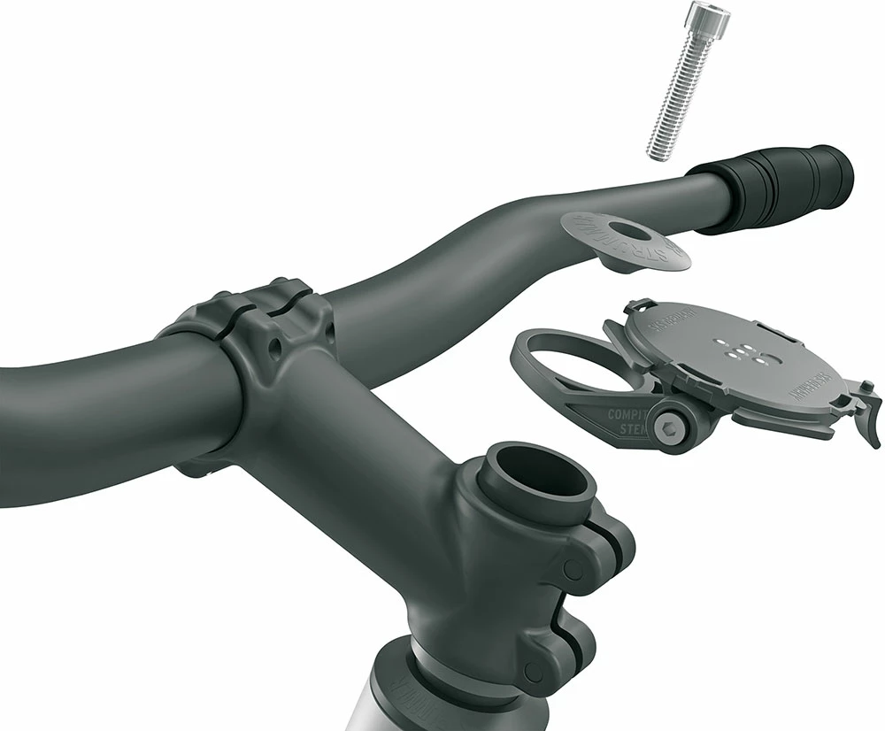 Ainsi, le cockpit reste propre et le guidon libre. Avec son montage sur potence, le support pour téléphone portable offre en outre une solution idéale pour utiliser le système COMPIT également sur les VTT électriques avec un serrage de guidon de 35 mm.