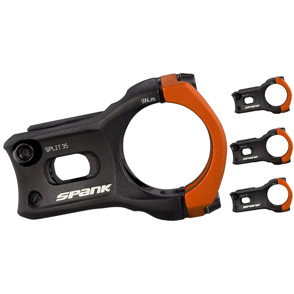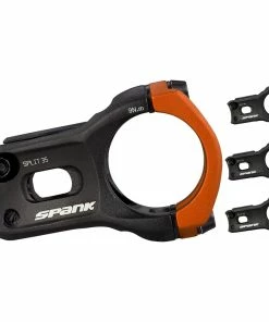 La potence Split de Spank – ici en couleur « black/orange » – est un composant de qualité hautement optimisé en termes de poids pour ton VTT. Le serrage du guidon biseauté, la faible hauteur et le capuchon stylé rendent la potence MTB Spank pour guidon de 35 mm stable, durable et agréable à regarder.