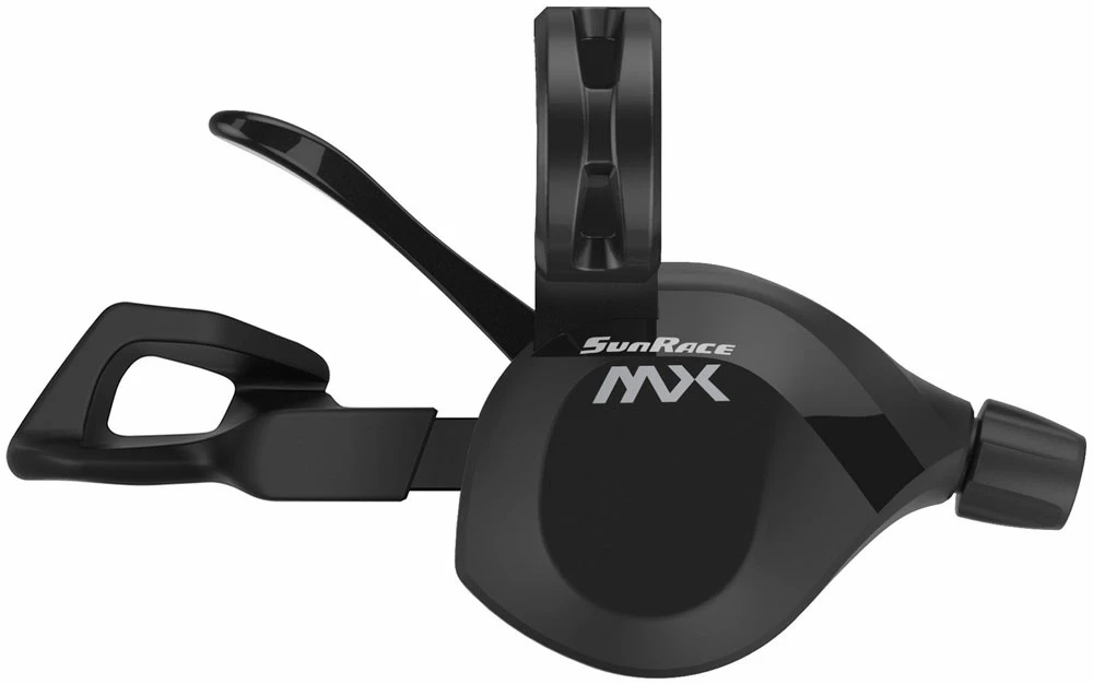 Avec le levier de vitesses push-pull 11 vitesses SunRace MX, 4 vitesses peuvent être passées d’une simple pression du pouce.