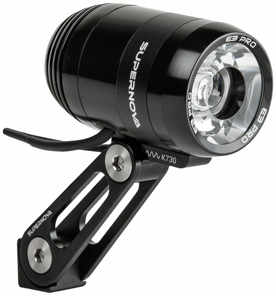 Que vous vous rendiez au travail ou que vous voyagiez à travers les paysages les plus reculés du monde, cette lumière continue et brillante vous permettra de remarquer chaque éclat de verre ou nid de poule. L’un des points forts de la E3 PRO 2 est le logo Supernova qui brille. Non seulement il ajoute un aspect esthétique à ce phare, mais il augmente aussi considérablement votre sécurité grâce à un éclairage latéral clairement visible.