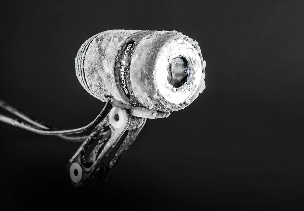 La lentille TERRAFLUX est un jalon dans l’ingénierie optique. Aucune autre lentille ne produit un faisceau aussi brillant et régulier sur la route tout en éclairant les environs immédiats au-dessus de la limite entre la lumière et l’obscurité. Avec la lentille TERRAFLUX, vous êtes remarqué par le trafic sans éblouir les conducteurs venant en sens inverse. La forme intelligente du faisceau de la lentille TERRAFLUX projette 90 % de la lumière sur le sol, exactement là où vous en avez besoin. Elle se déploie en un large tapis de lumière qui commence juste devant la roue et s’étend au loin. L’éclairage de jour permanent intégré à la lentille augmente considérablement la visibilité du conducteur dans la circulation. La nuit, cette même partie du faisceau éclaire exceptionnellement bien les environs et avertit le conducteur de la présence de branches basses sur le sentier. Depuis des années, nous poursuivons le développement du TERRAFLUX pour rendre la lentille encore plus efficace et le faisceau lumineux encore plus brillant. Dans certains de nos derniers produits, la quatrième version du TERRAFLUX est déjà installée. Cette nouvelle génération d’enregistreurs a maintenant un feu de route !
