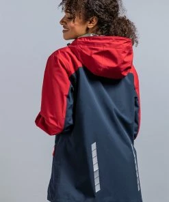 La coupe de la veste de pluie est plus longue Ă l’arrière. La capuche peut ĂŞtre rĂ©glĂ©e Ă l’avant et Ă l’arrière de la tĂŞte pour garantir un champ de vision clair, mĂŞme lorsque l’on tourne la tĂŞte. Les fermetures Ă©clair sous les bras permettent une ventilation supplĂ©mentaire en cas de besoin. En outre, la veste comporte une impression rĂ©flĂ©chissante dans le dos.