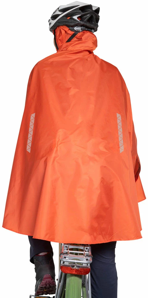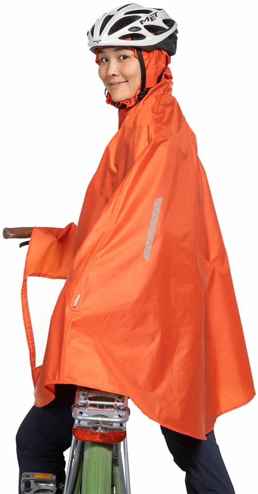 Le Bike Poncho te protège efficacement à vélo en cas de pluie et de neige. Il possède une capuche fonctionnelle que tu peux porter sur ou sous ton casque de vélo. À l’intérieur, il y a une ceinture élastique pour le fixer et deux grandes boucles pour les pouces. Le poncho possède également deux poches pour passer les mains.