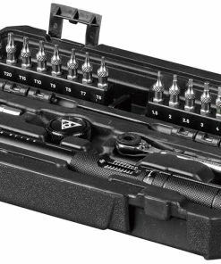 Mini-cliquet avec levier de précision pour le pouce permettant de changer le sens de rotation et molette pour un vissage rapide et un contrôle maximal, même dans les espaces restreints. Comprend un porte-embout magnétique pour un levier allongé, un porte-embout Fingertip pour visser dans des espaces restreints et 18 embouts d’outils de 30 mm de long pour un accès facile aux têtes de vis difficiles à atteindre. Les moletages sur les embouts d’outils facilitent le retrait du porte-embouts et l’extraction de la clé dynamométrique et du mini-cliquet.