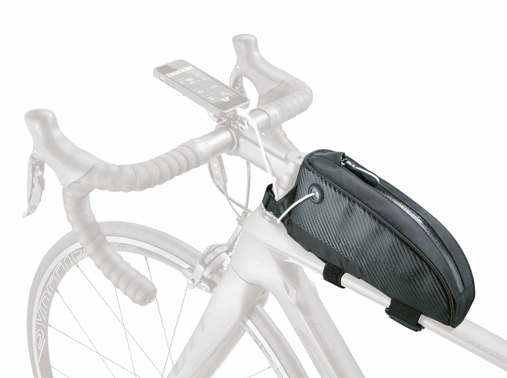 La poche pour le tube supérieur. Pratiquement accessible pendant le trajet, pour les barres énergétiques, le téléphone portable, le portefeuille, les outils ou tout autre équipement important.