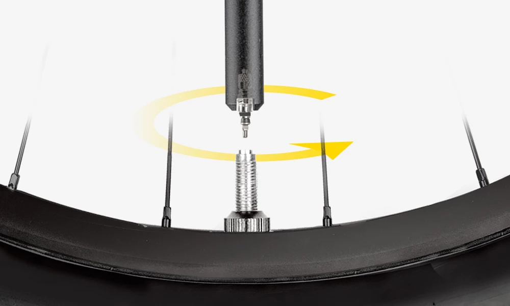 - L’outil de valve intégré est utilisé pour serrer ou desserrer les noyaux de valve Presta en deux parties