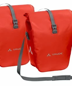 Les sacoches arrière impermĂ©ables Aqua Back sont fabriquĂ©es Ă partir d’un matĂ©riau de bâche robuste et sans PVC, dans le respect du climat, sur le site allemand de VAUDE, près du lac de Constance, et se feront un plaisir de partir en voyage avec vous.
