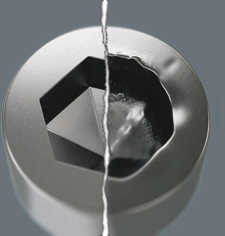 Les outils TORX® HF développés par Wera se distinguent par l‘optimisation géométrique du profil TORX® d‘origine. En résulte un coincement mécanique entre l’empreinte de l’embout et l‘empreinte de la vis, les vis TORX® sont maintenues en toute sécurité sur l‘outil conformément à la spécification Acument Intellectual Properties ! Particulièrement utile dans les espaces restreints où l‘on ne peut pas utiliser la deuxième main pour maintenir la vis.